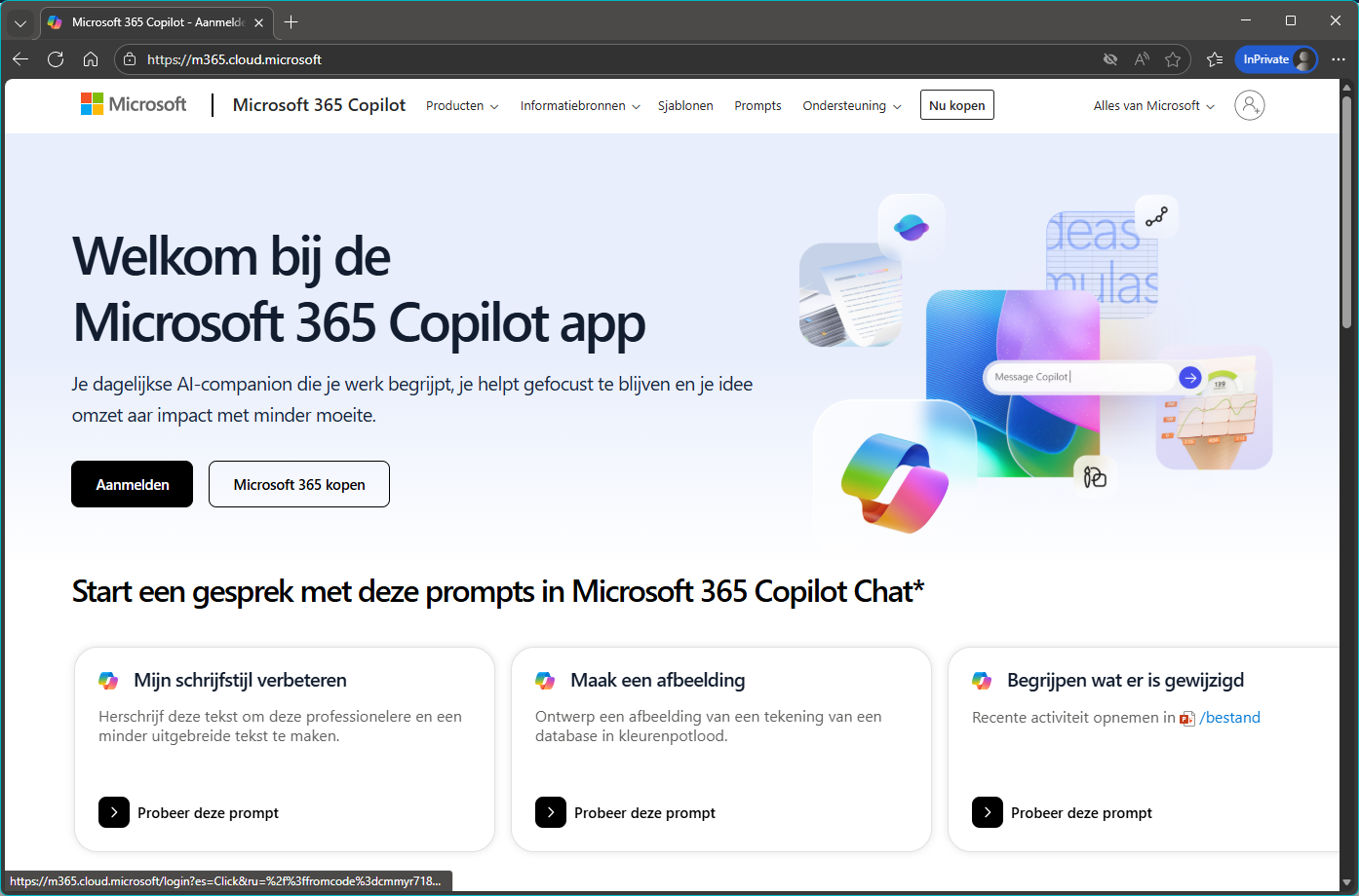 Ga dan naar de pagina https://microsoft365.com (Tip: bewaar deze site als favoriet of stel deze als startpagina in)