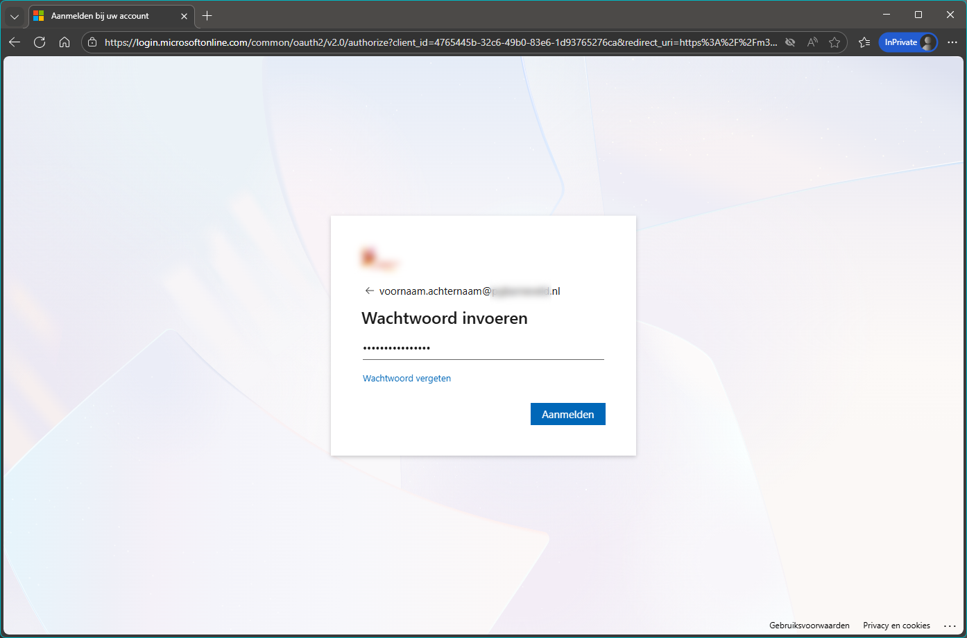 Mogelijk vraagt uw browser om het wachtwoord op te slaan. Doe dit wel op een veilig (eigen) computer maar niet op een gedeelde computer met anderen.