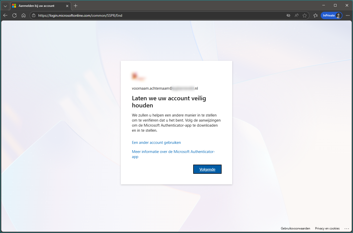 Tip: wilt u achteraf de beveiligingsmethode veranderen bijvoorbeeld als u een nieuwe telefoon heeft dan kan dat via deze pagina: https://mysignins.microsoft.com/security-info (u kunt ook meerdere methodes instellen).