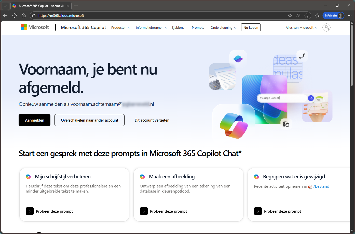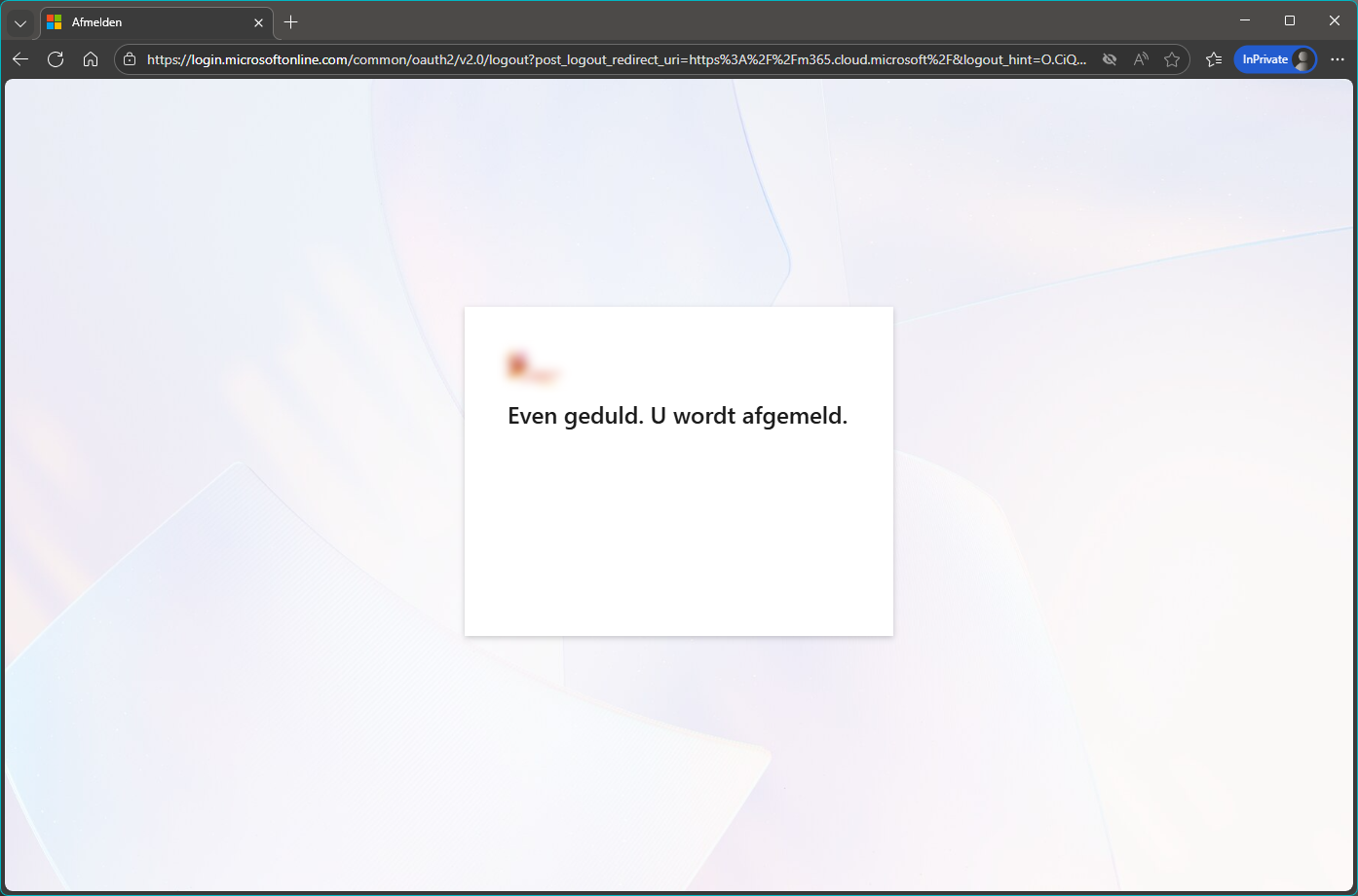 We gaan nu afmelden van Microsoft 365 door linksonder op je naam te klikken en dan te kiezen voor “Afmelden” (Sign out).